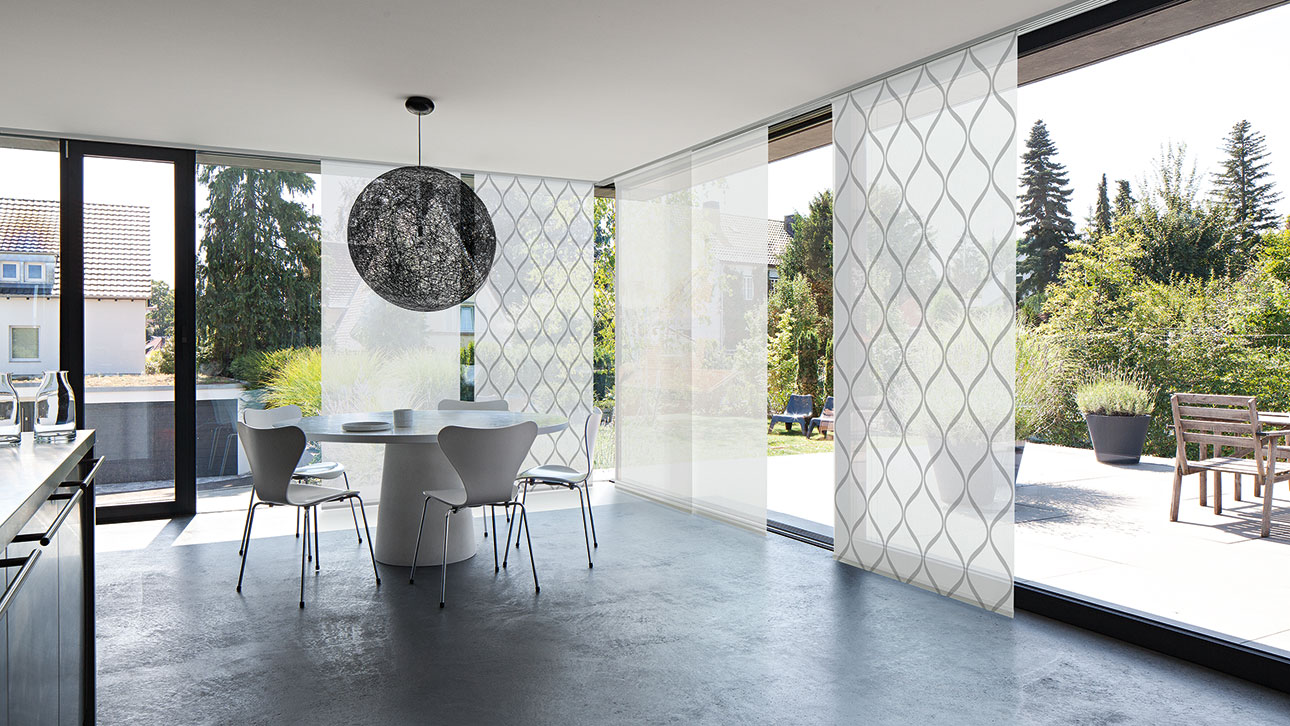 Moderne Leichtigkeit! MHZ Flächenvorhänge sind Sonnenschutz und Gestaltungselement in einem. Ob gemustert und bunt oder schlicht und zart: durch vielseitig kombinierbare Farben und Texturen finden Sie genau die richtige Kombination für Ihren Raum. Gerade bei größeren Fensterfronten verbinden Flächenvorhänge praktischen Sonnenschutz mit einem wohnlichen Ambiente.