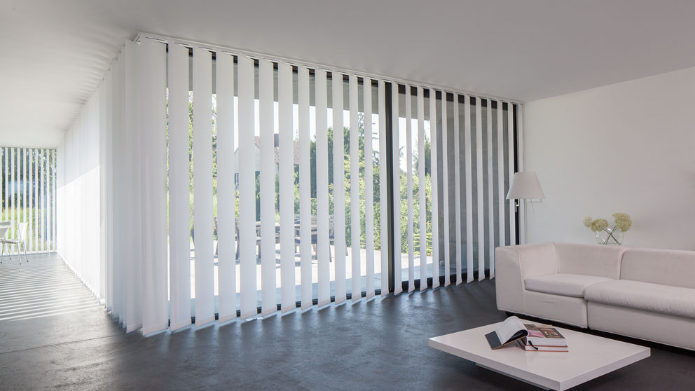 Mit den Vertikal-Jalousien von MHZ findet die klassische Lösung für Büroräume Einzug ins moderne Wohnen: Optimale Lichtregulierung trifft elegantes Design, dass auch auf großen Flächen nicht schwer oder störend wirkt. Raffiniert: Mit besonderen Textilbeschichtungen reflektieren die Lamellen einfallendes Licht und ermöglichen so störfreies Arbeiten auch am Bildschirm, ohne auf Tageslicht verzichten zu müssen.